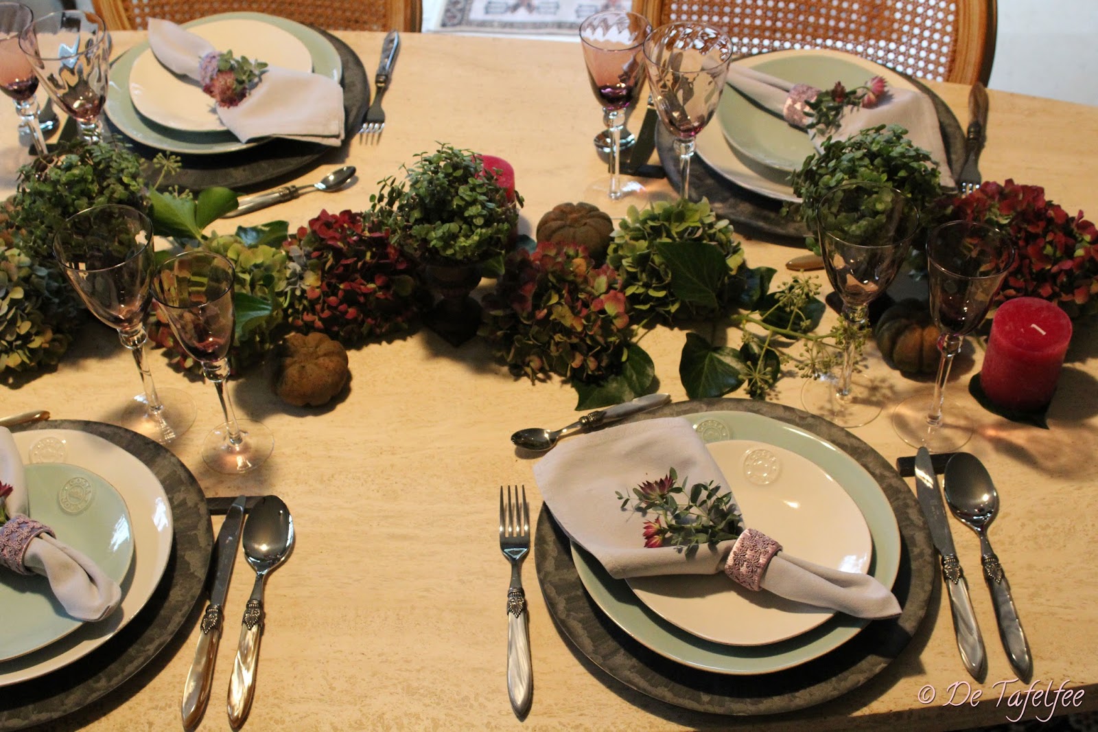 Wat bij de ene stofnetten verzamelt en een ideale behuizing vormt voor de spinnenpopulatie daar tovert de tafelfee in een mum van tijd een prachtige tafel mee. Sober maar krachtig deze decoratie. Een stukje wild erbij en ik schuif direct aan ;-)